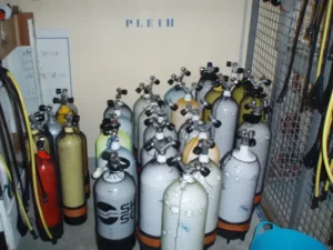 Ainsi que 6 blocs NITROX avec leurs détendeurs Ils sont suivis, entretenus, inspectés par les membres du club possédant la formation TIV (qualification).
