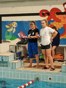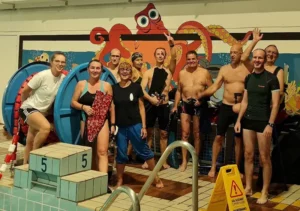 Chacun peut arriver a l’heure qui l’arrange et faire ou pas l’entraînement proposé sur les fiches collées sur le bord de la piscine (en effet, compte tenu du nombre de nageurs et des lignes d’eau mises à notre disposition, difficile de mettre en place un véritable « encadrement »).