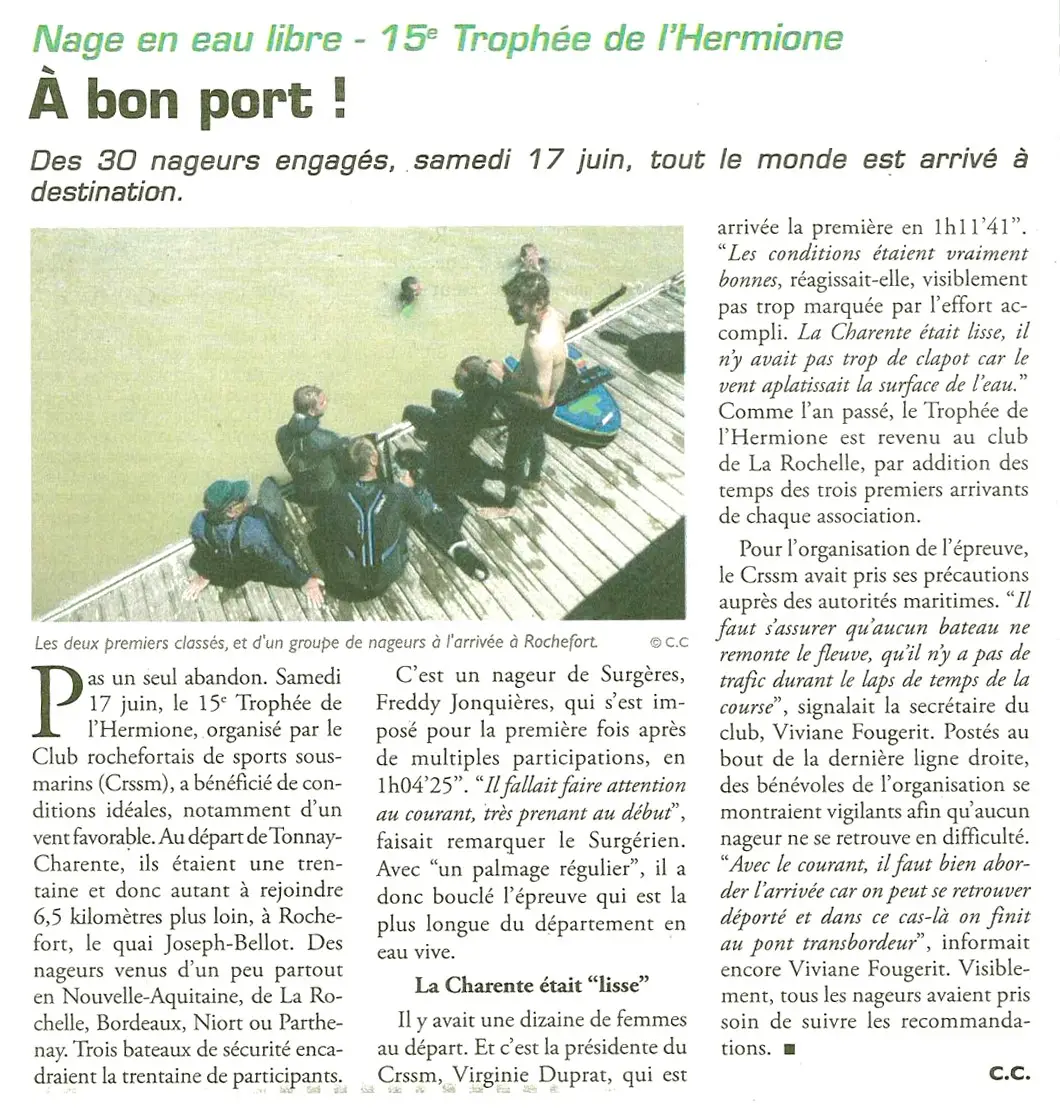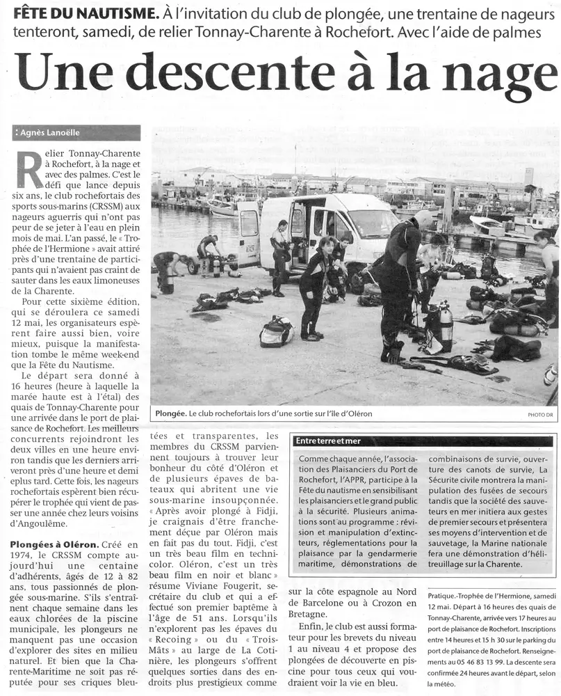 Article du journal “ Le Journal de Rochefort ” Février – Mars 2016.